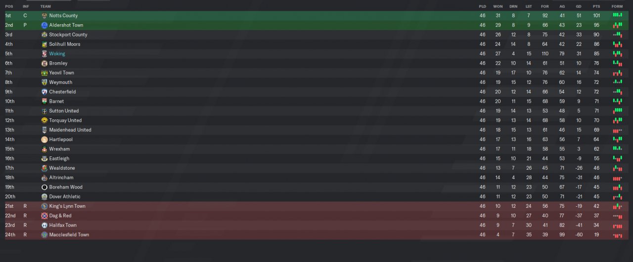 Did do a test with Woking who are awful, just to see what a low level team would perform like.
