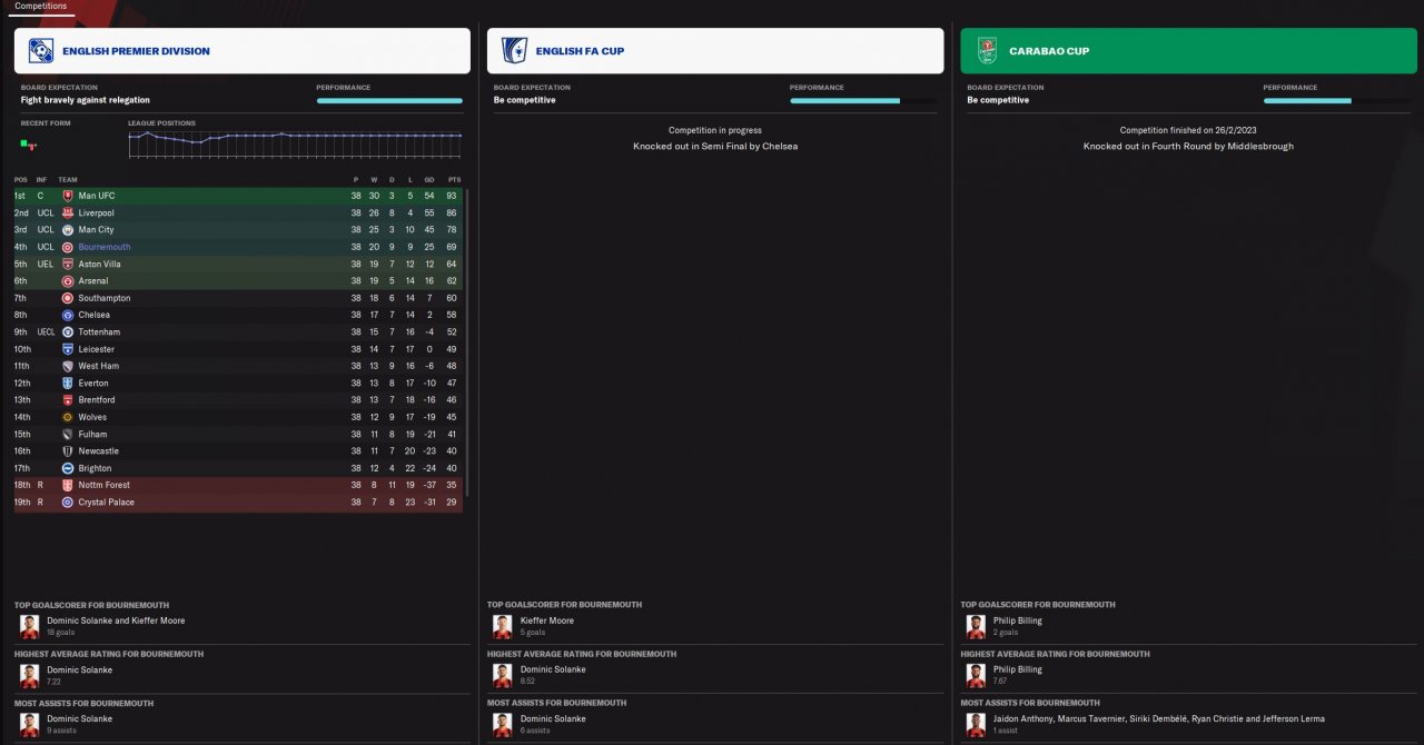 I tested again with Bournemouth and Kettering. Bournemouth finished 4th and Kettering topped their league.