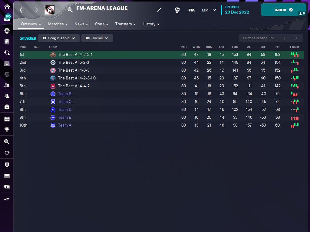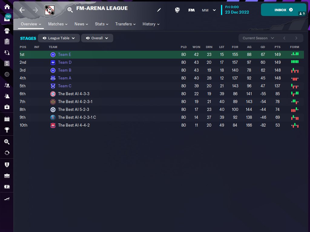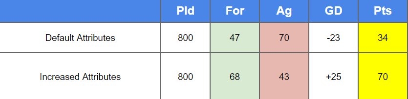 As you can see the points have increased from 34 points to 70 points and the G.D. from -23 to +25 and it turned the Human Controlled team into into dominant winners from complete losers.