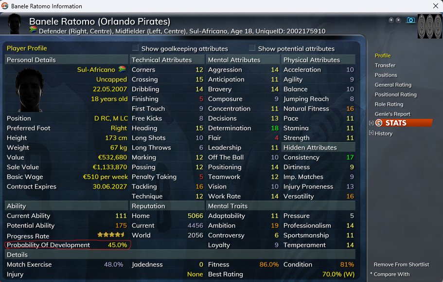 Ambition and determination do also help, but you'd rather have 15+ professionalism and can get away with 10 for ambition and determination. Players do the most development between 15-23.