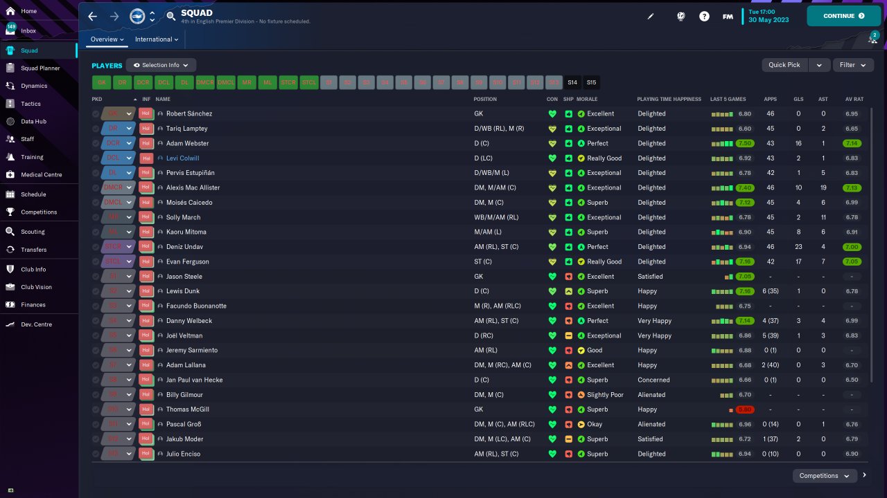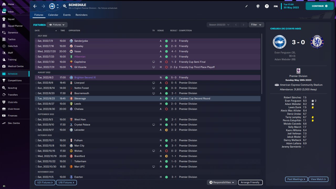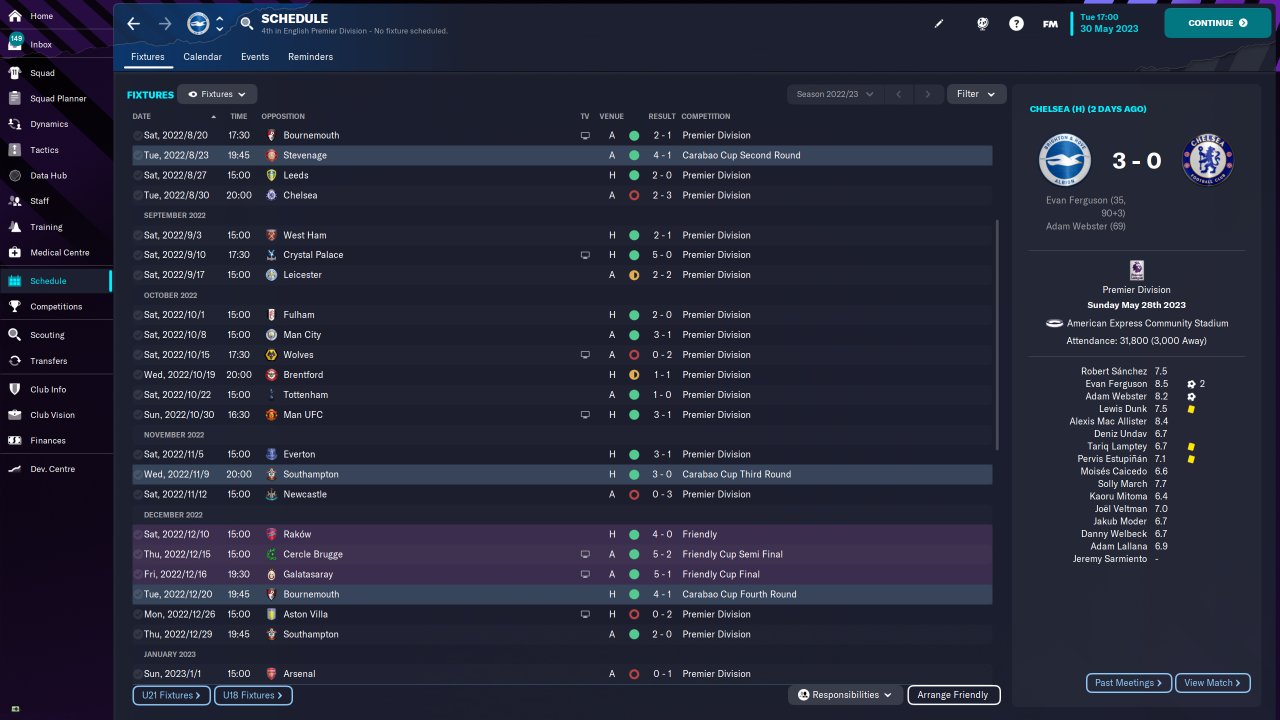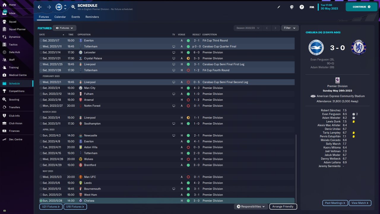 Brighton Premier League fourth