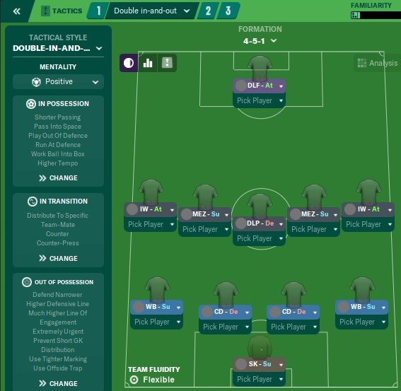 The idea is to pack the midfield, but then ultilise IW and Mez on each side crossing from out to in and in to out. The DLP-De then sits in the middle of the park and sprays the ball around.