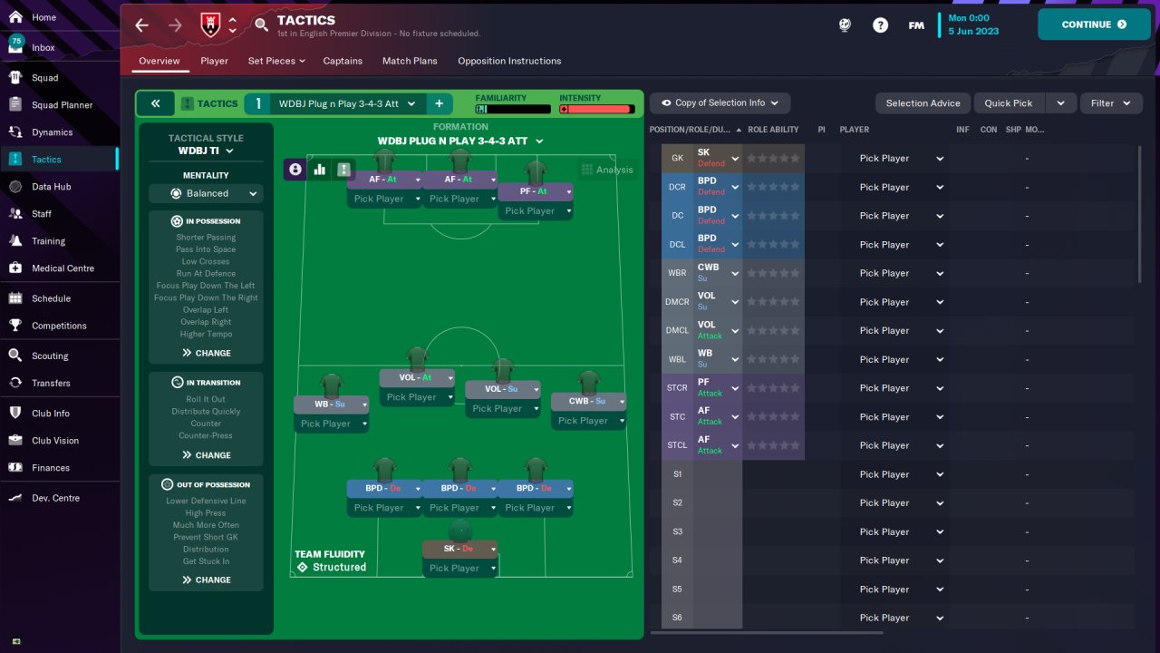 1. The top tactics for FM23 use 4 at the back. While I don't think a 3-CB-tactic can outscore those top tactics, I would like to see how good it can be. I am posting this tactic to see if any other players are interested in using such tactics, and hopefully may find someone with even better ideas.