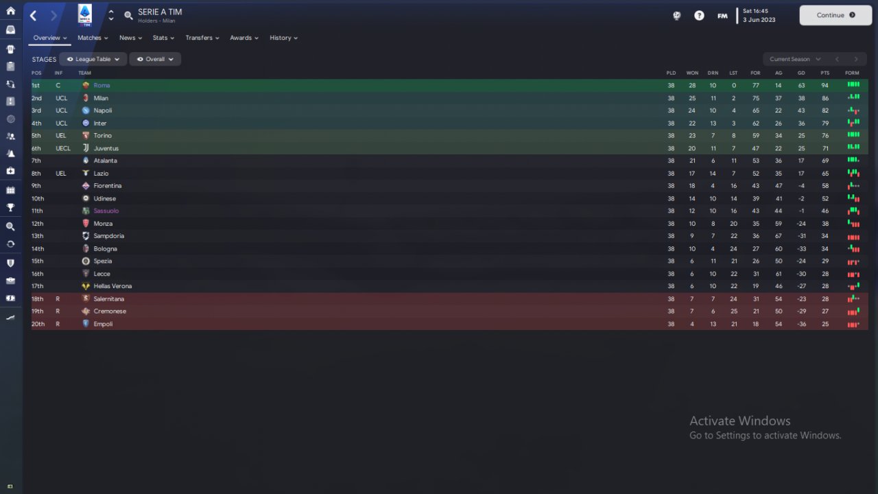 Counter attacking tactic mainly keeping defense in mind. I like keeping cleansheet rather than scoring 10 goals in a game. Sometimes I dropped the defensive line if the opponent is far better than me. With this tactic i went undefeated in Serie A first season with only adding 2 signings.