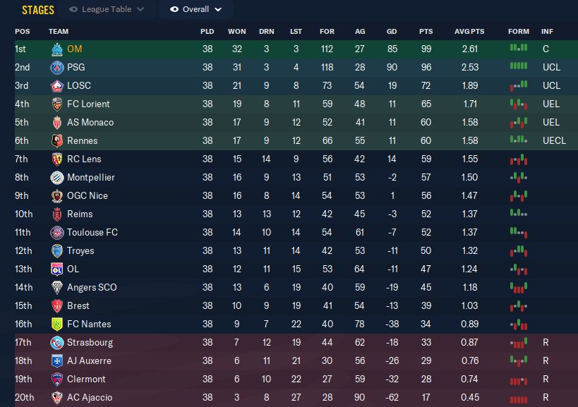 99 points in ligue 1