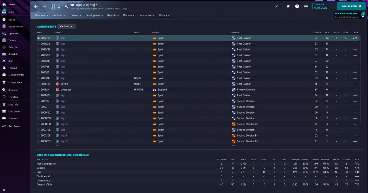 Celta good resut. aspas 34game 43goal