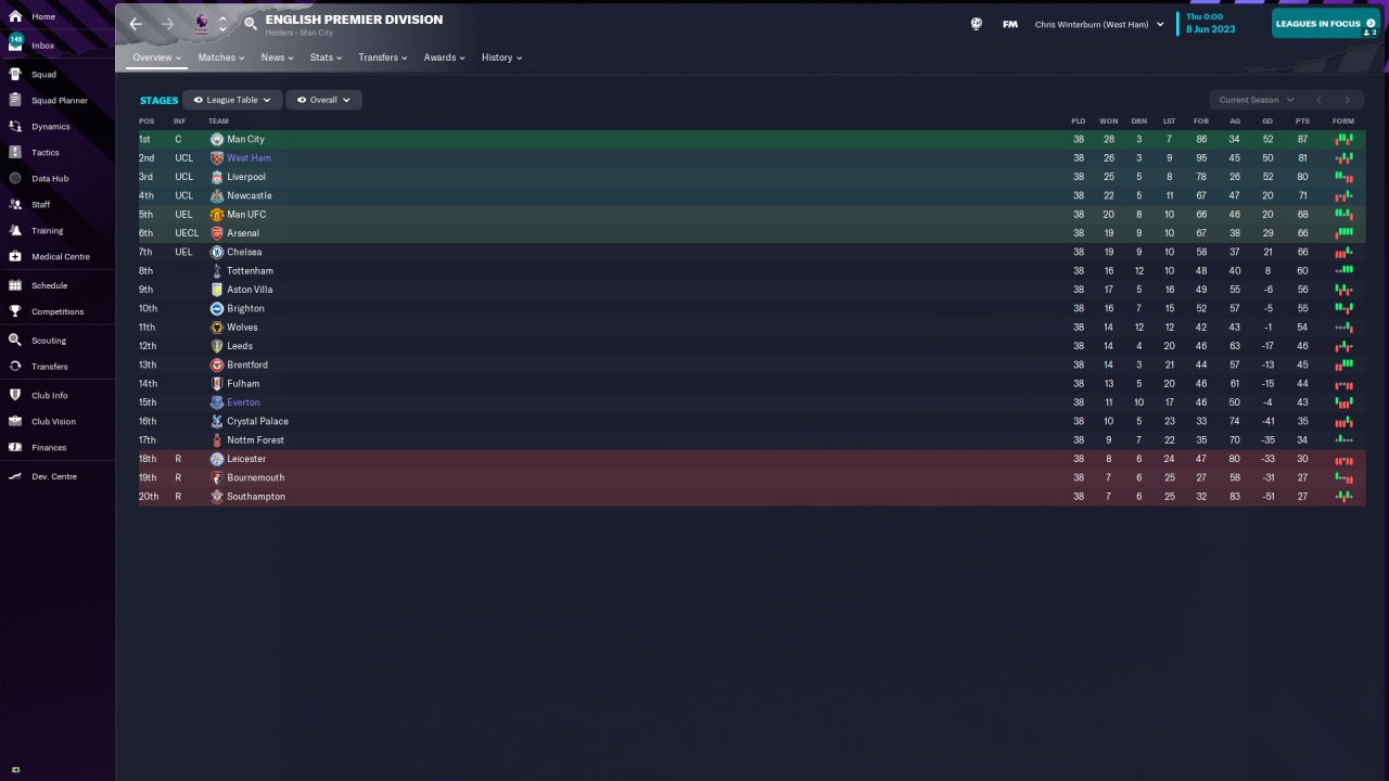 PL Table:
