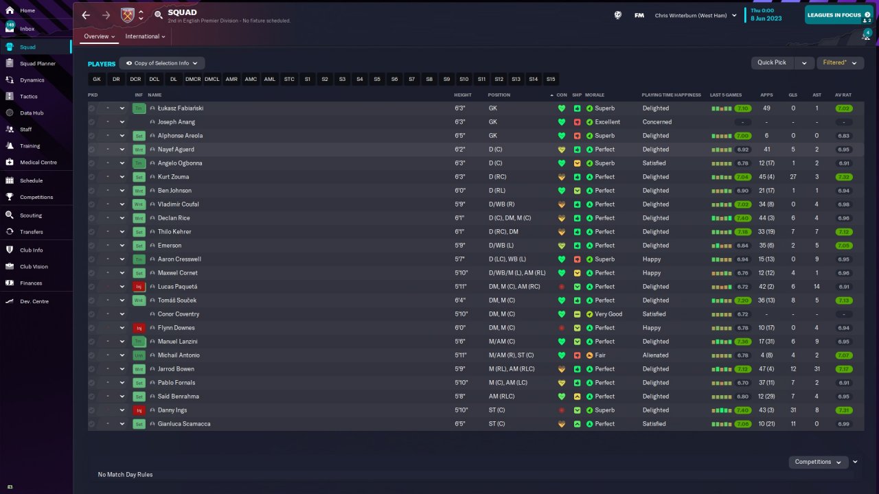 Just some minor changes here to bring the best out of the AMC/SS. Asked to take more risks with his passing and I think if I recall correctly I told the AF to take more risks also.