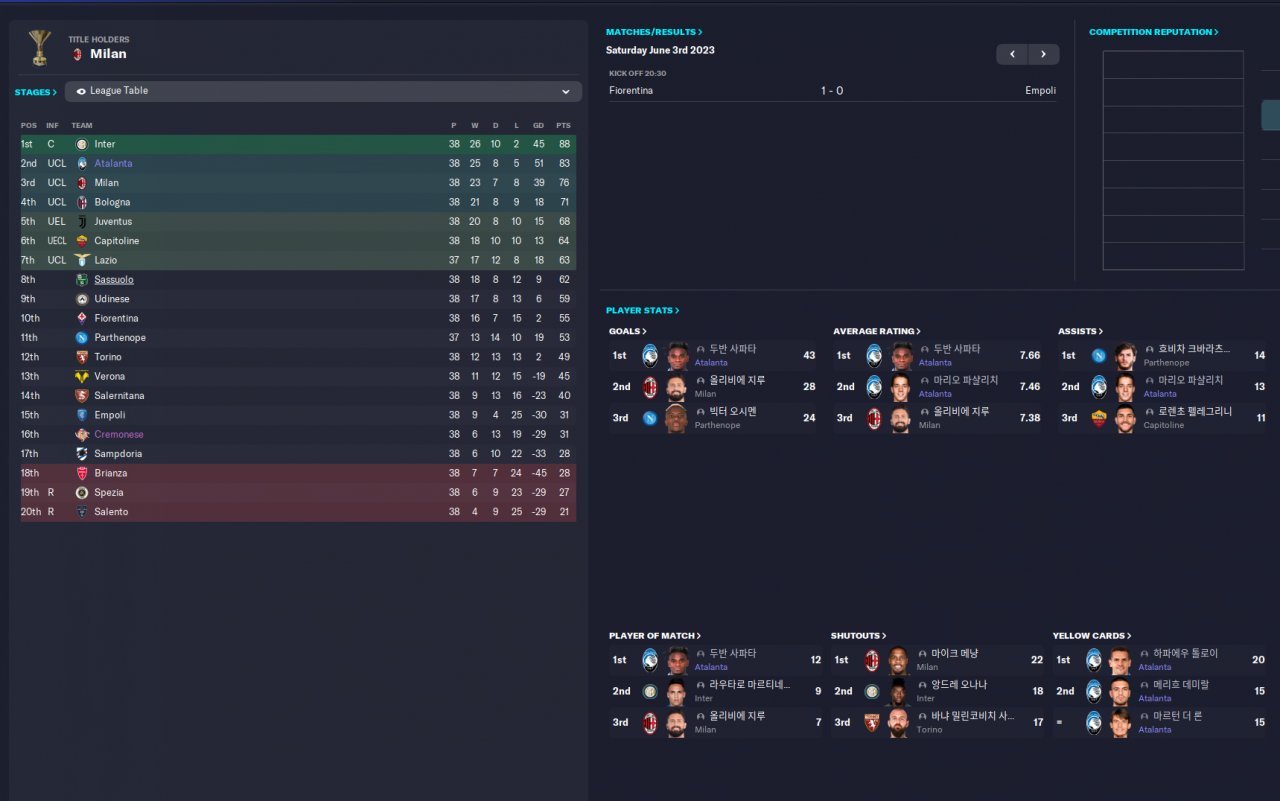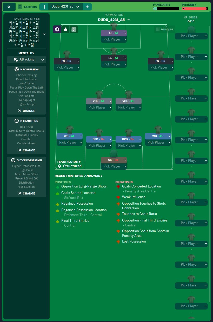 It is an aggressive tactic based on the 4231 tactic. I didn't finish 1st in the league, but I'm uploading it because the attack index is good.