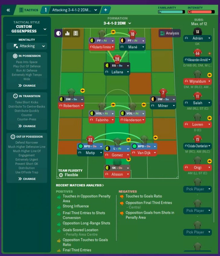 I've been testing some tactics and running them through one year worth of holidays with Liverpool in FM2020. This was a very successful one, as I always was enamoured with the idea of getting a working 3 defender tactic.