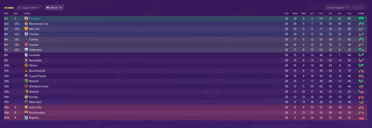 - Won Premier League (95pts, 112 goals for and 21 against, that's 2.94 gfpm and 0.55 gapm).