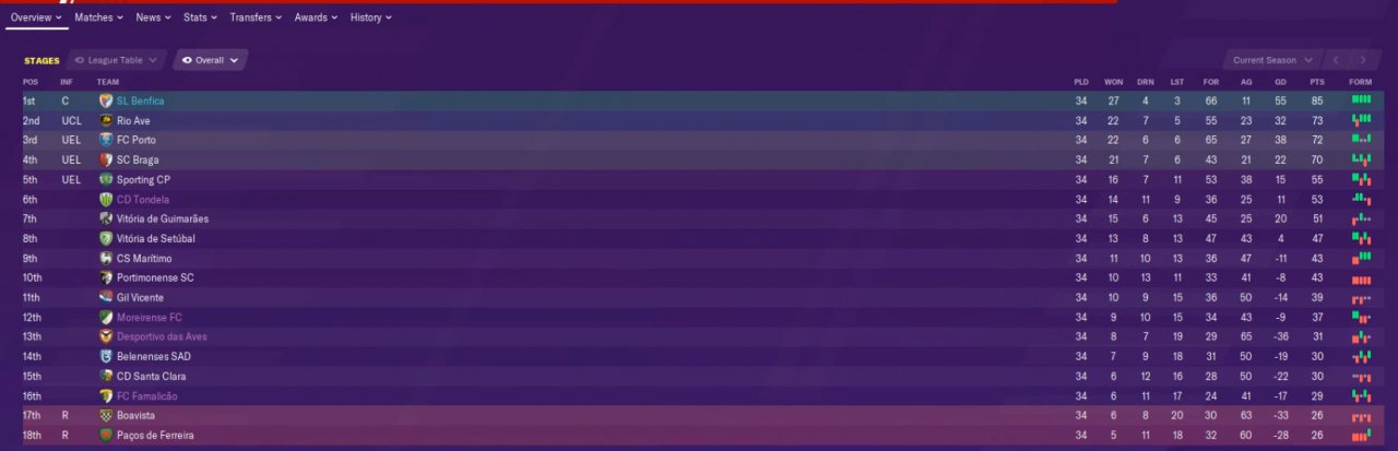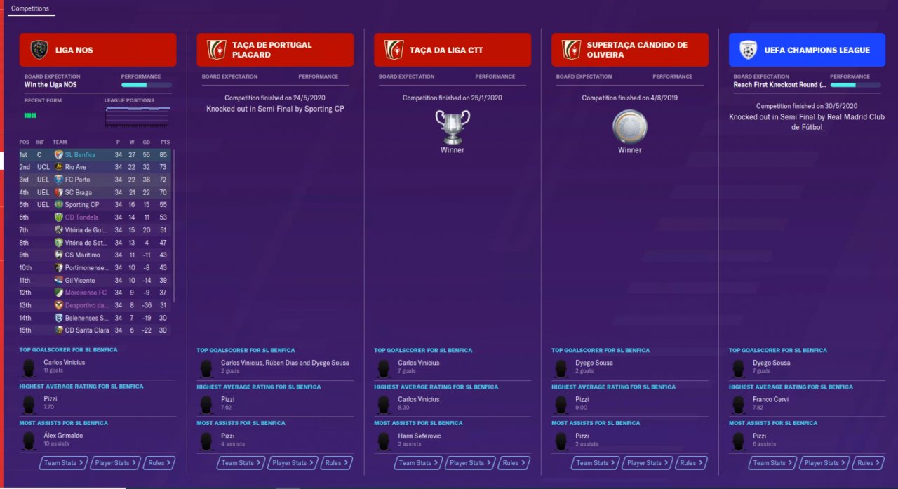 Decided to make an extra test with my club, SL Benfica. Domination in Portugal was expected and achieved, although the team has very few players adapted for the positions, namely Volante, Liberos and Defensive Wingers. Still, got respectable results and will next try with a mid-table Spain,England or Italy team.