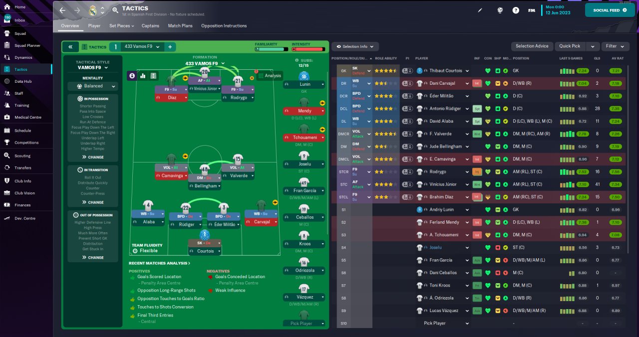 Wanted to try a 3 striker tactic. Instead of 3 AF's, wanted to try the False Nine role. Set pieces are from the 424 Bombyte tactic.