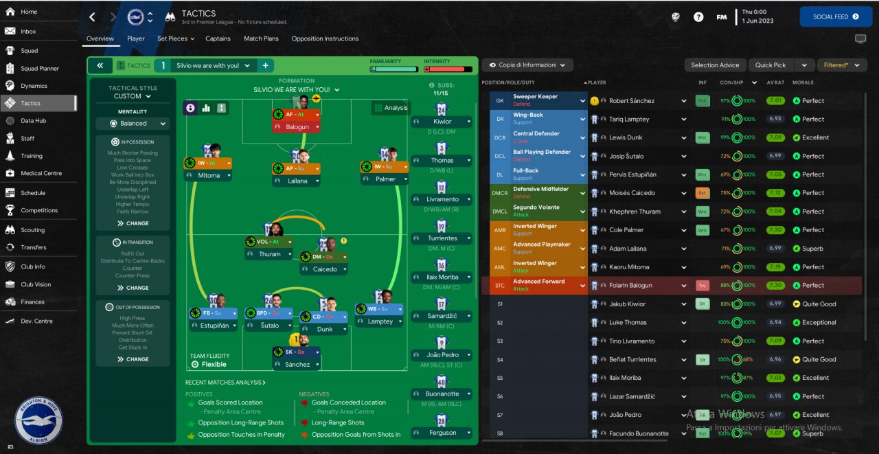This was a brief role-by-role summary. This tactic, as already mentioned, aims to have control of possession using a strong intensity both in the possession phase and in the non-possession phase. He also aims to have quick possession, based on quick touches and a lot of ball movement, without despising some throws into spaces when they can be really dangerous. Lastly, I know it's not a 'meta' tactic but I believe and hope there is someone who wants to see their team play well and have a 'good game'. Hope you like it, have fun!