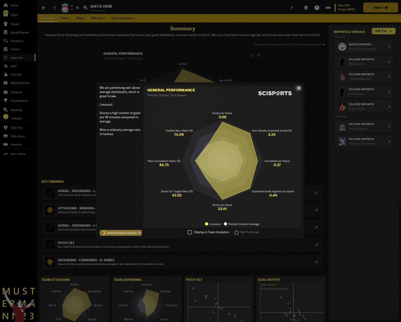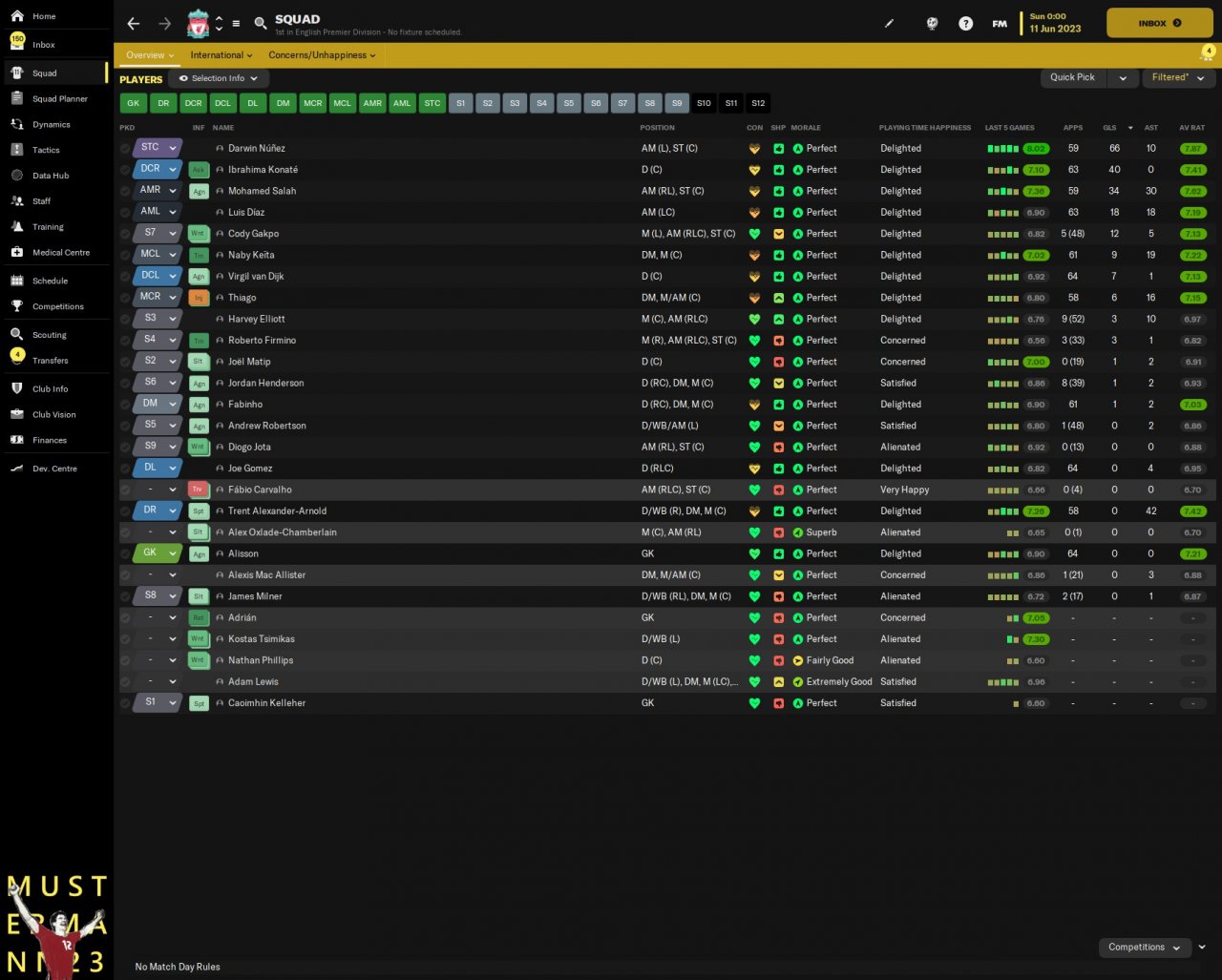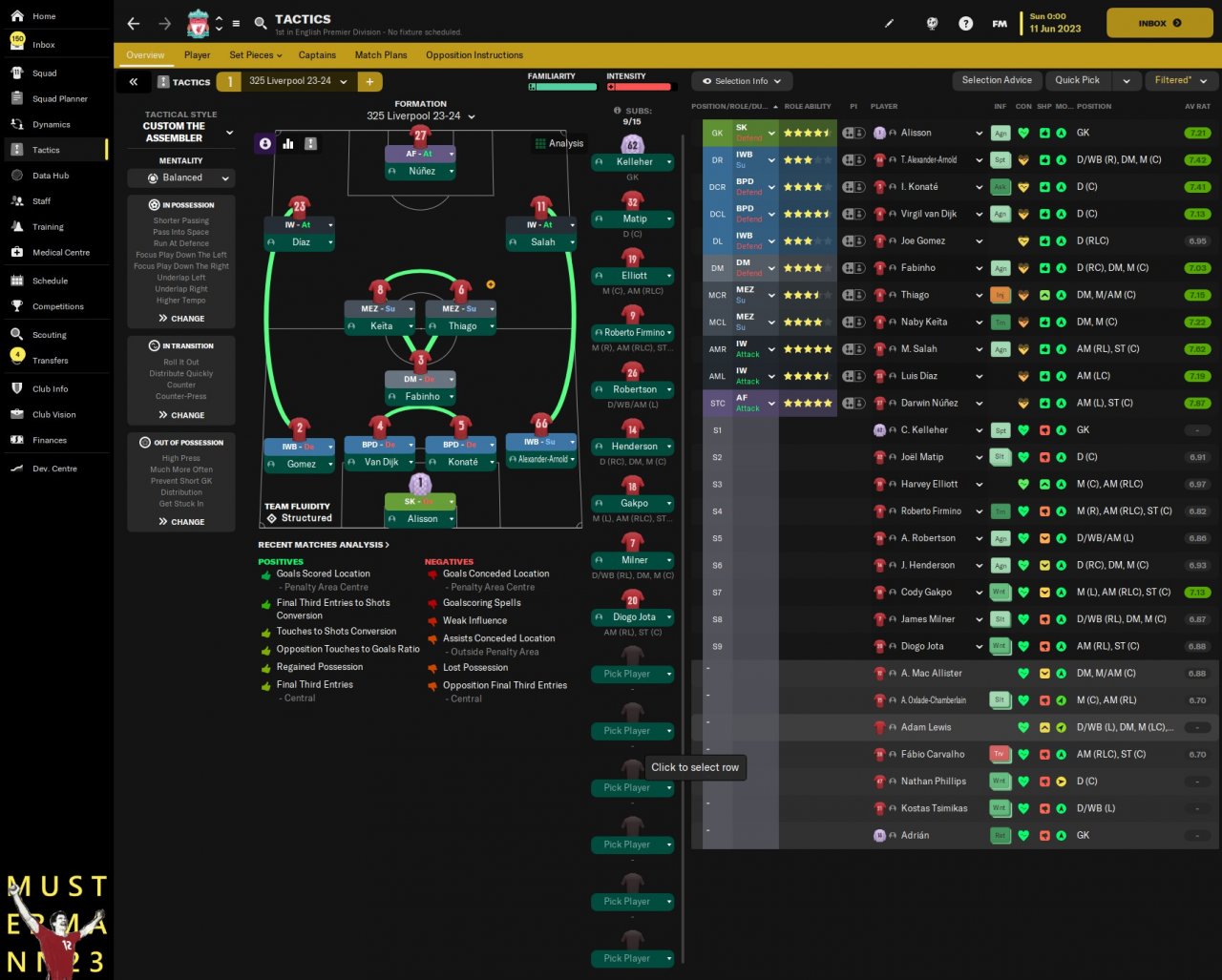 This is an attempt to recreate what Liverpool are doing in the 23/24 season, using player roles to create a 325 when in possession, This tactic allows Trent to slot into the midfield 2 and the Mezzalas push up to form a front 5.