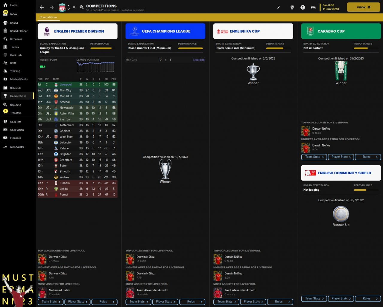 This tactic works extremely well in holiday simulations and won the QUADRUPLE on first run. The 2 Mezzala are essential to chance creation with the right IWB providing 42 assists in all comps.