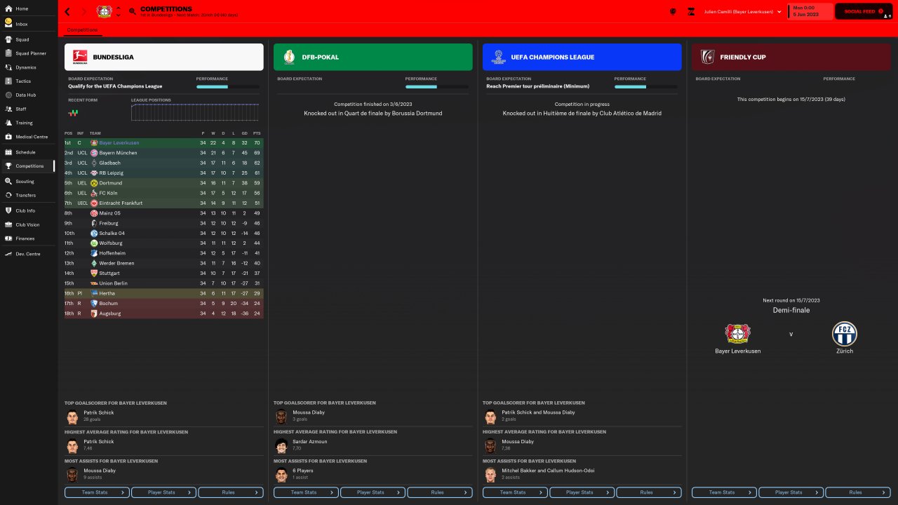 - Bundesliga with Bayern Leverkusen (1st)