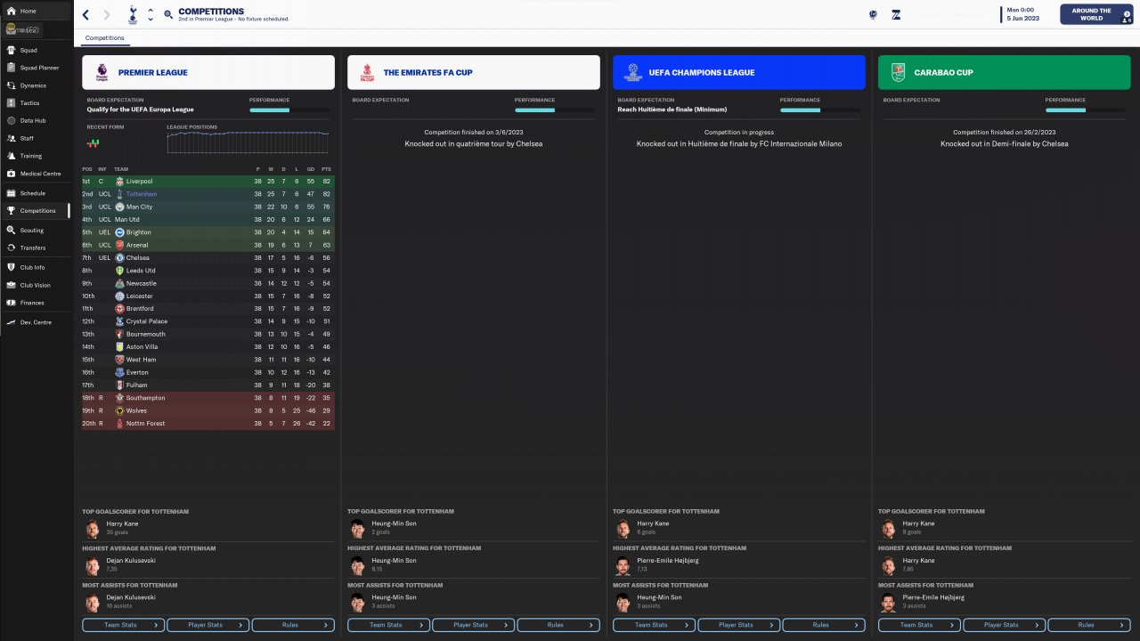 - PL with Tottenham (2nd)