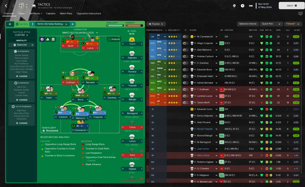 This is my 352 , i tried to made really stable defensively 352 so im glad u can try it , i tested with parma here are the results