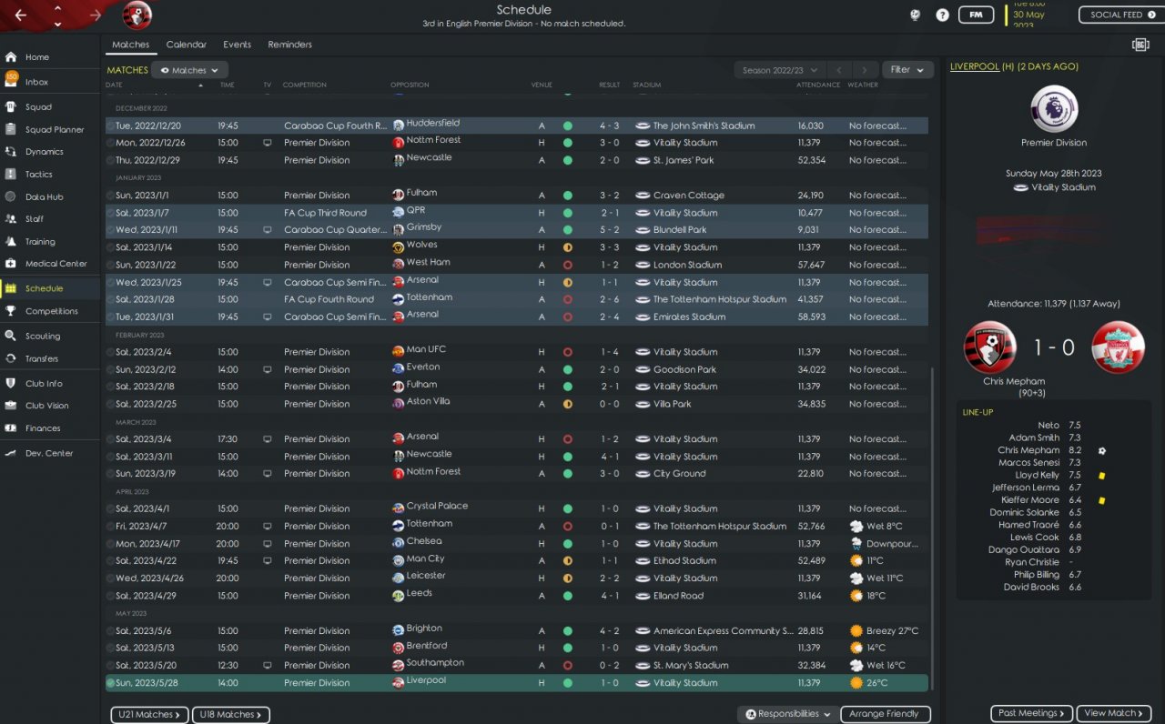 Additional Tweak made from 424 Bombyte Tweak P. Ended 3rd with Bournemouth.