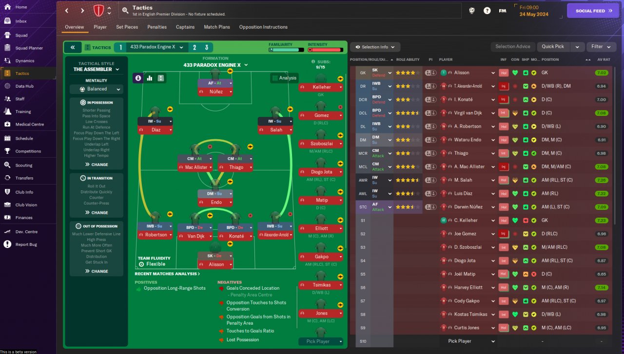 I've tried "433 Paradox Engine X" tactic with Liverpool in FM24 Beta - https://fm-arena.com/thread/5952-433-paradox-engine-x/