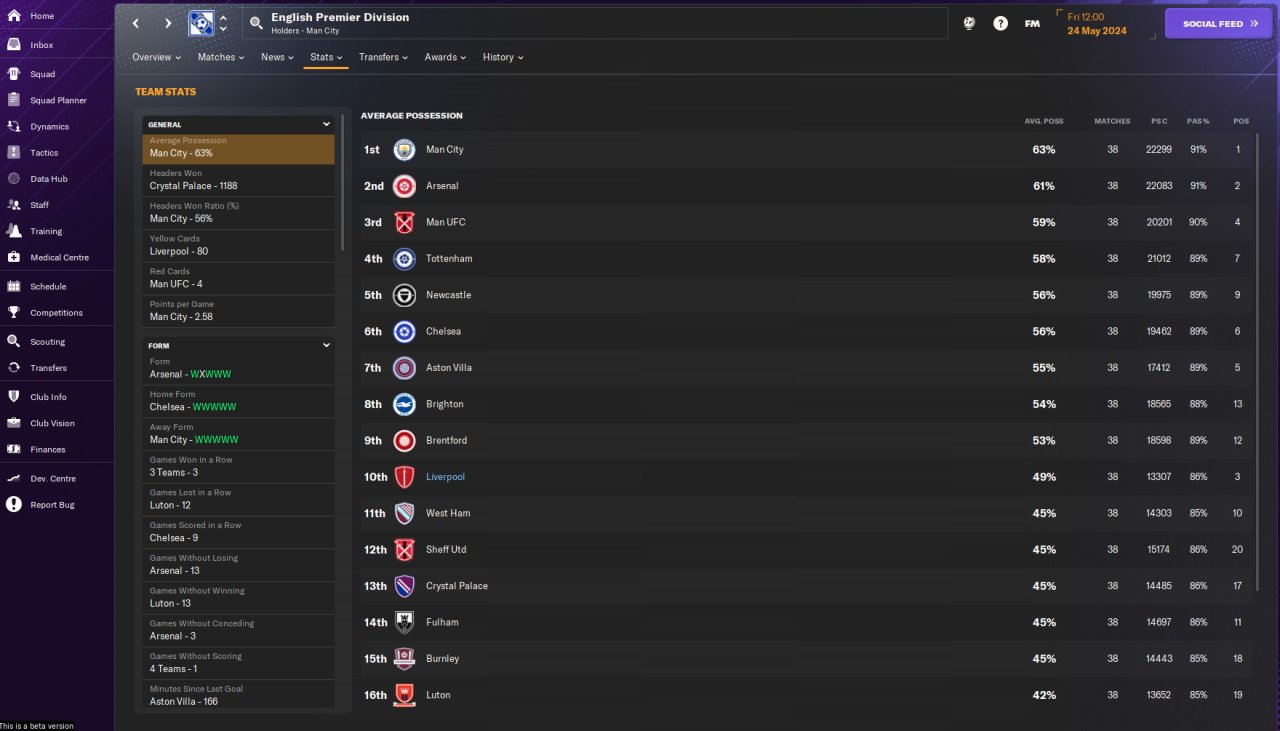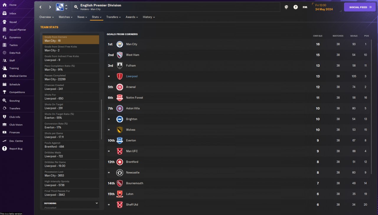 The result of this test should be taken with a grain of salt because during the test I delegated the training, team talks and set pieces to the assistant manager and went on Holiday until the end of the season.