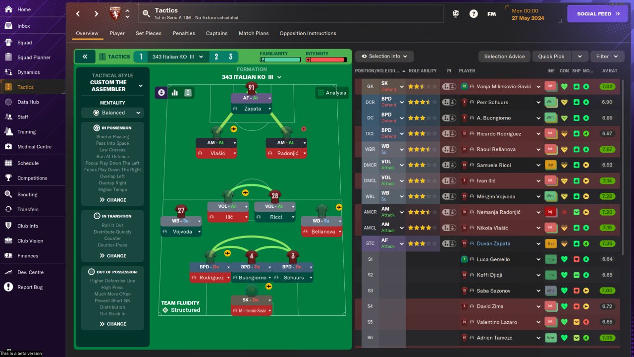 This tactic is based on the tactic created by @Delicious: 343 Italian KO III, the only change is the removal of 2 strikers in favor of 2 attacking midfielders. This tactic should guarantee fewer goals conceded and adapt better to more teams.