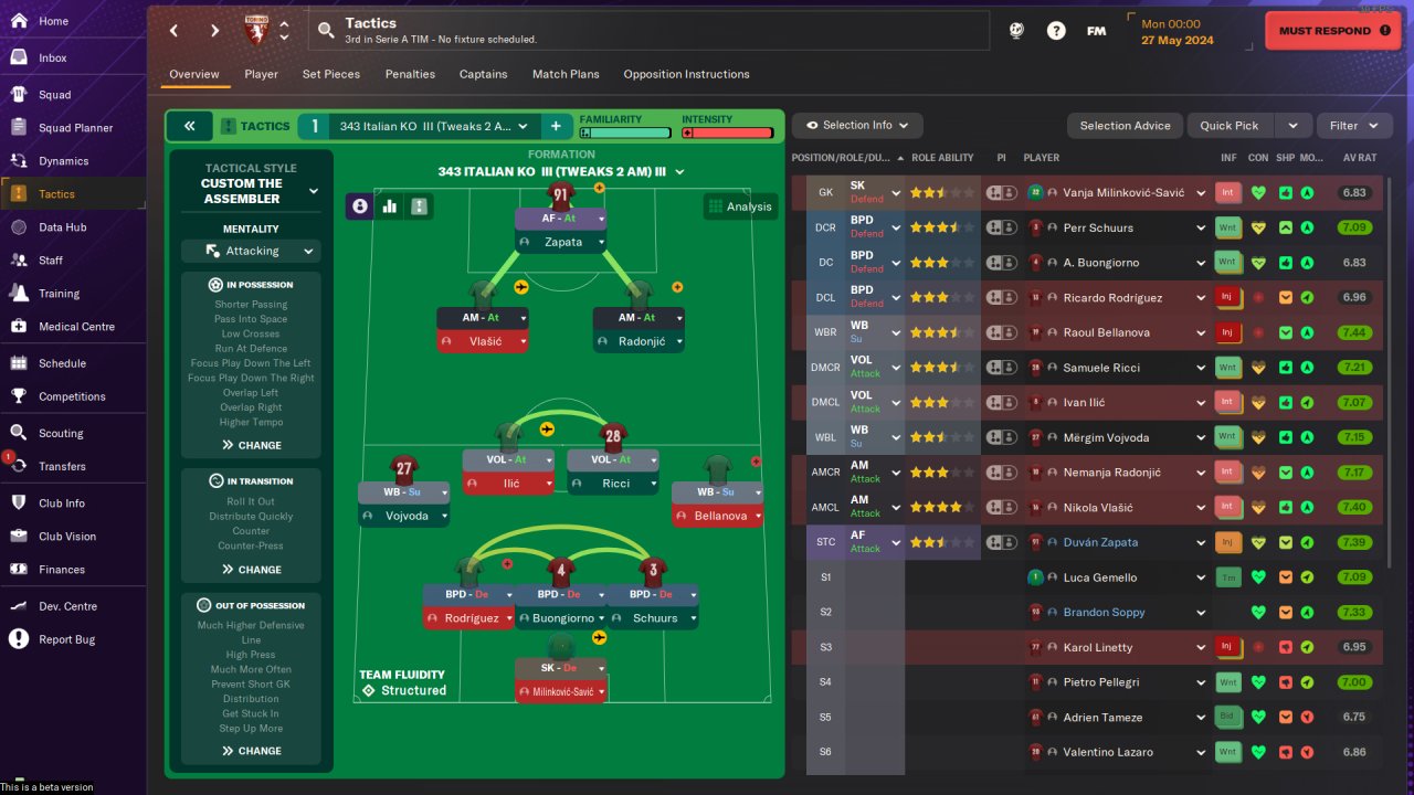 Tweaks: 2 AM, "Much Higher Defensive Line", "Step Up More", mentality: Balanced => Attacking