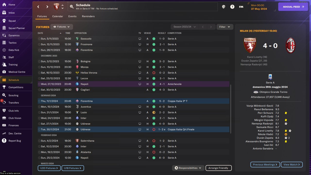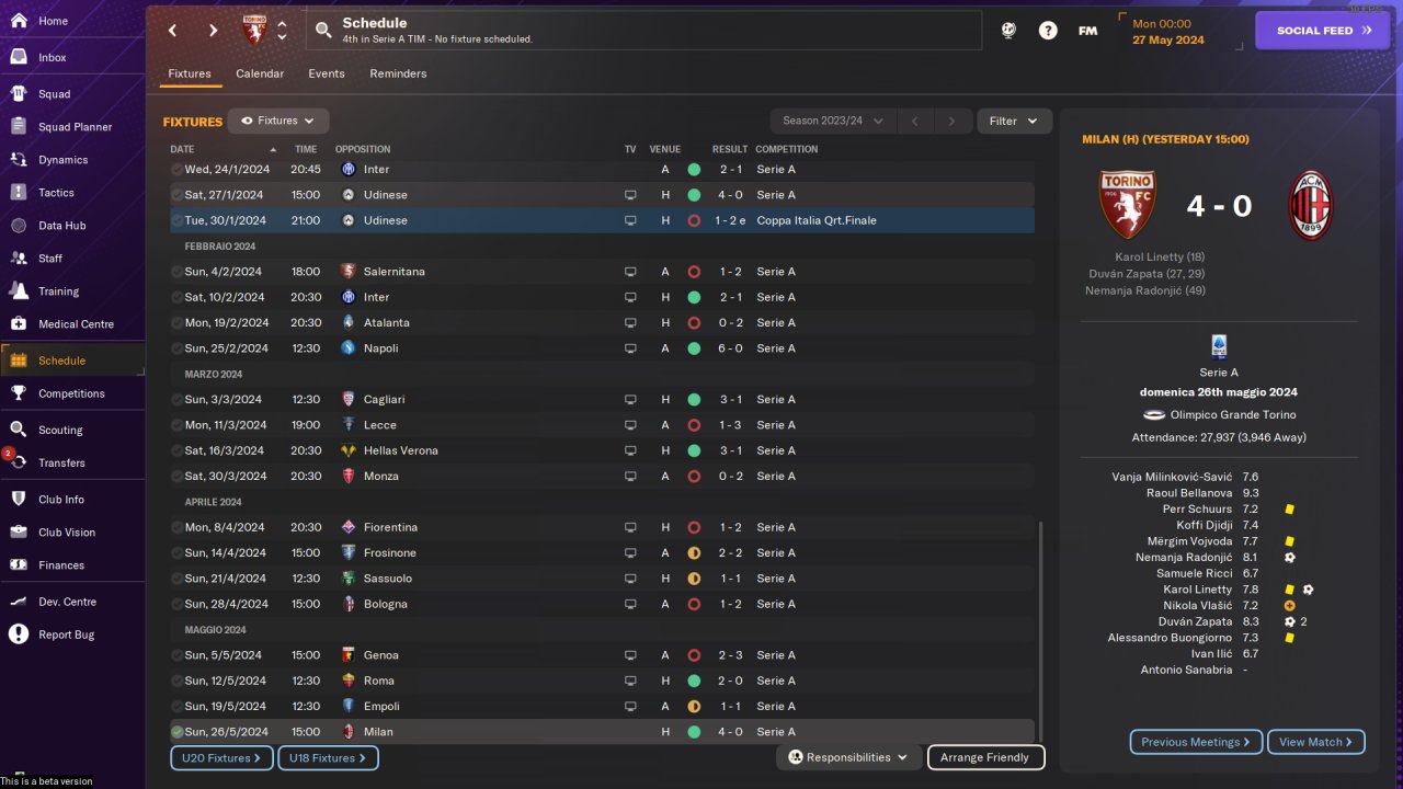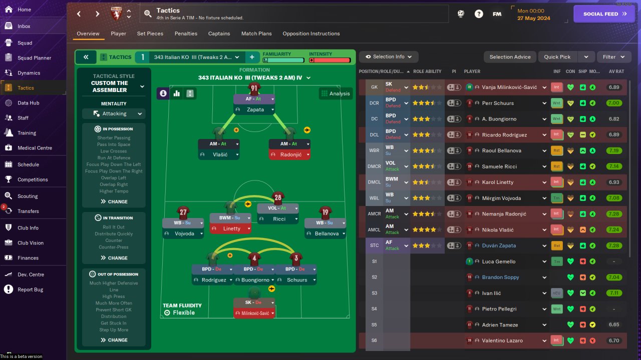 Tweaks: 2 AM, "Much Higher Defensive Line", "Step Up More", mentality: Balanced => Attacking, 1 VOL(A) => BWM(S)