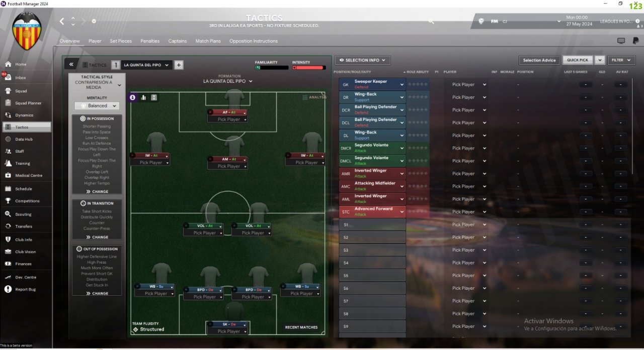 This tactic was created trying to imitate the playstyle of Pipo's Baraja Team, VALENCIA C.F.