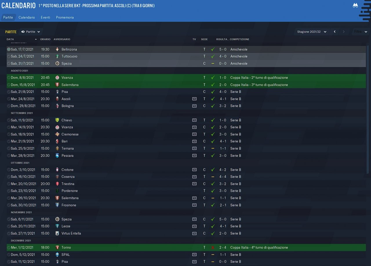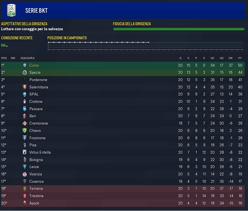Start of the season in serie B I was predicted 12th or 14th, can't remember precisely.