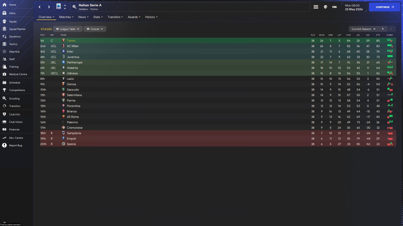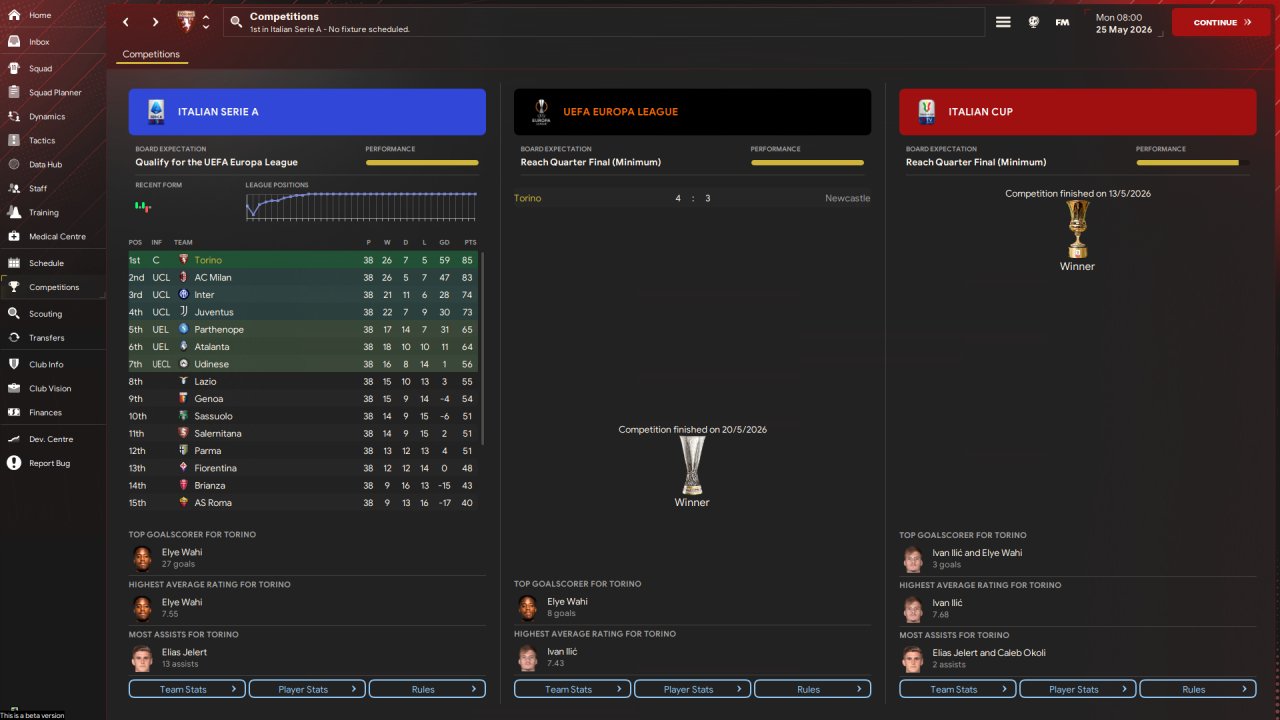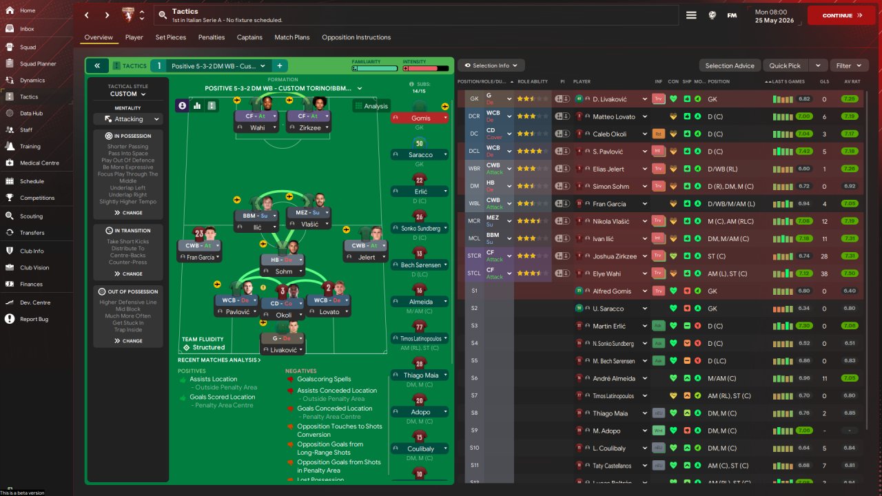 A version of a 352, won everything with Torino in the 3rd season. First 2 seasons finished 5th both times, slightly tweaking the tactic each season. Feel free to do any changes