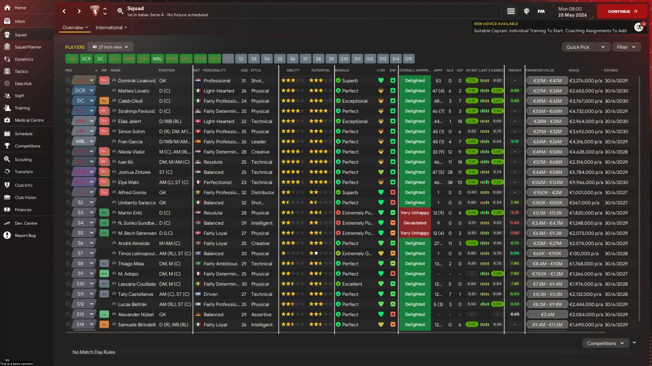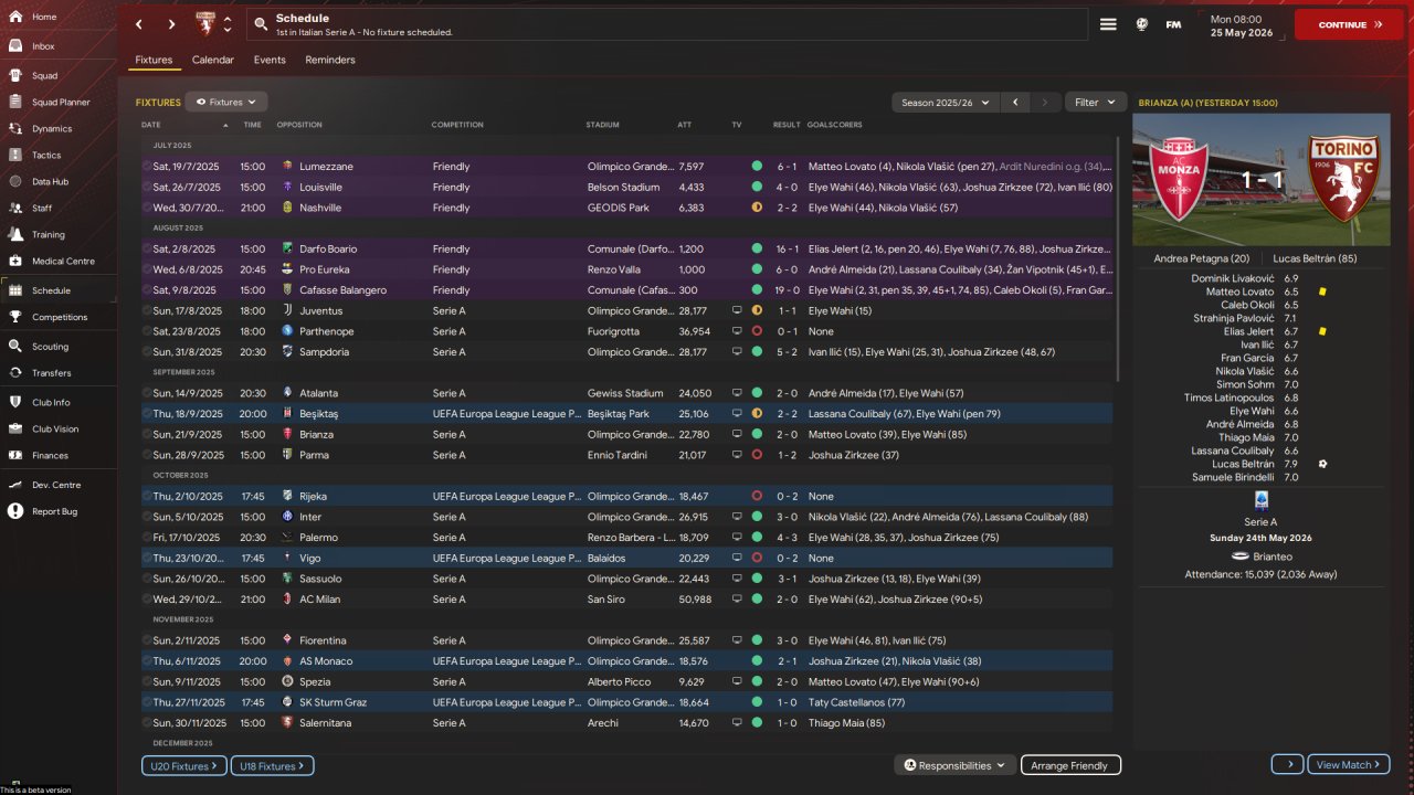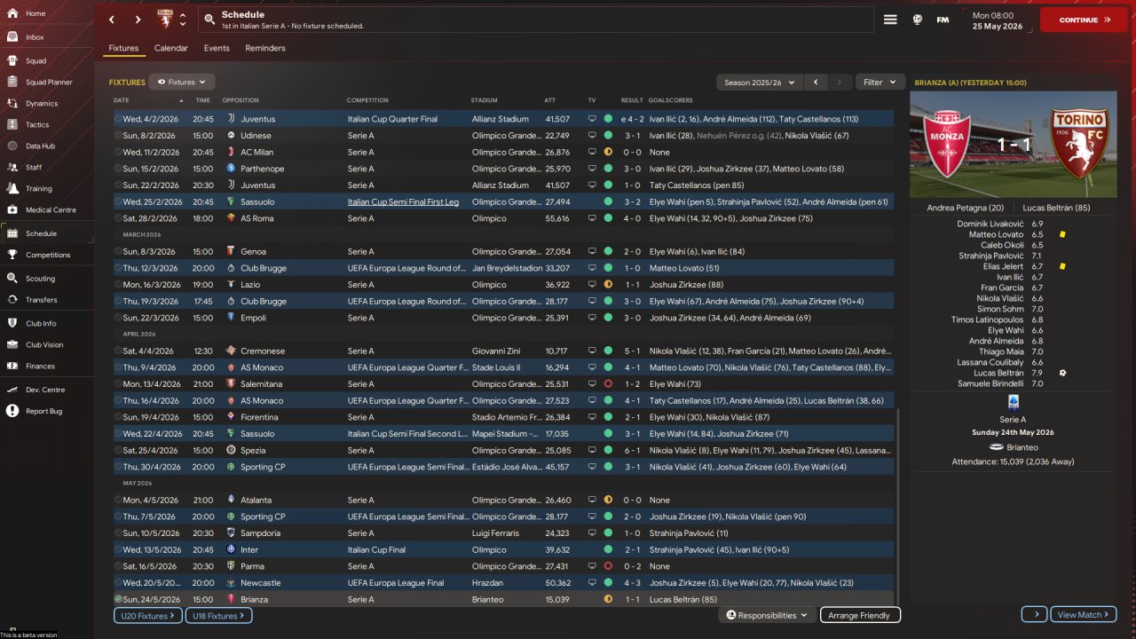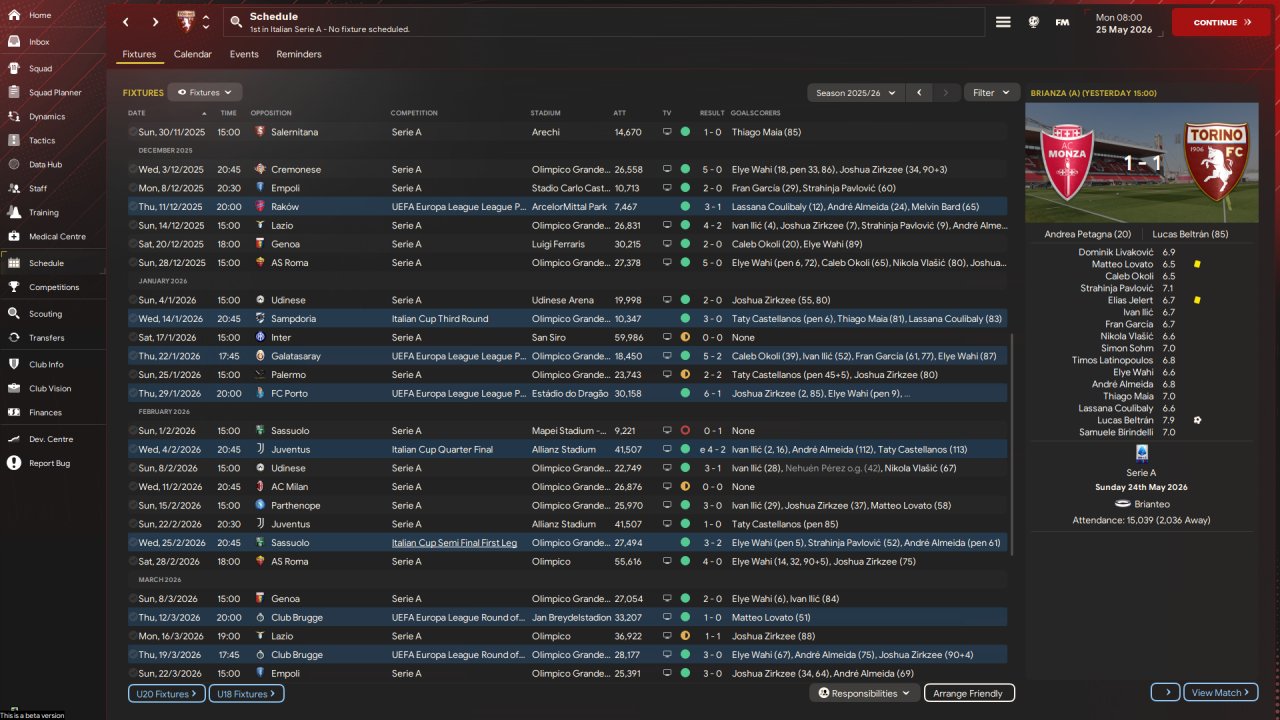 A version of a 352, won everything with Torino in the 3rd season. First 2 seasons finished 5th both times, slightly tweaking the tactic each season. Feel free to do any changes