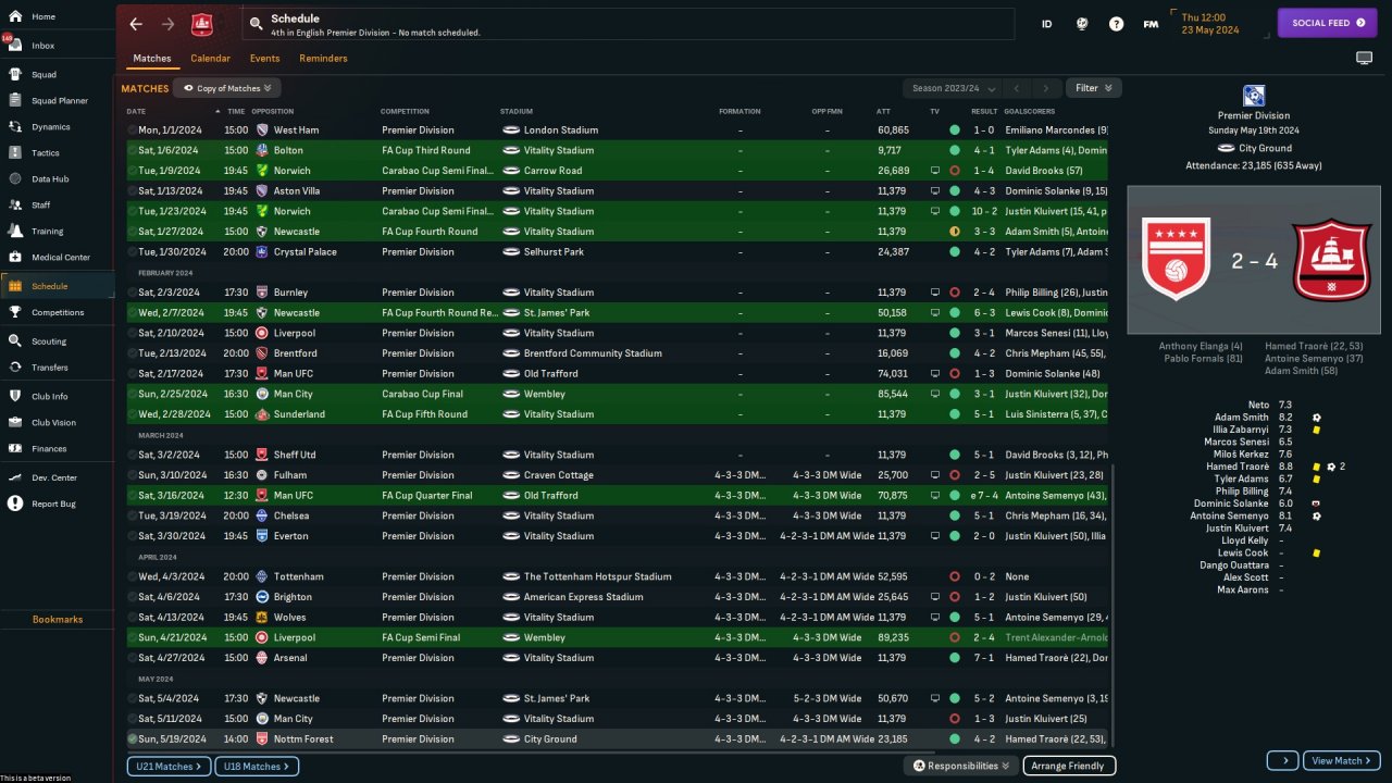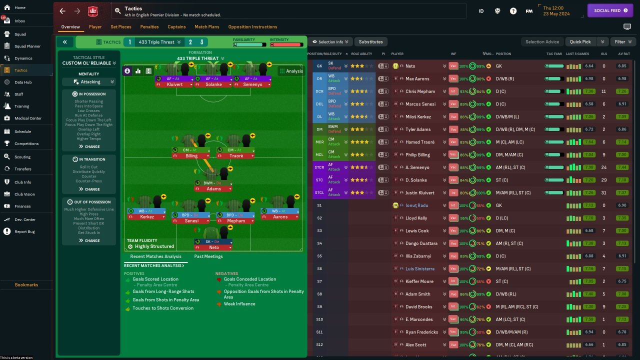 So I created a similar kind of tactic last time (FM 23) with MEZ (At) but I feel like CM (A) with Roam from position does the same thing. Also I noticed that BWM (D) is the king and not DM (D), so made that change too.