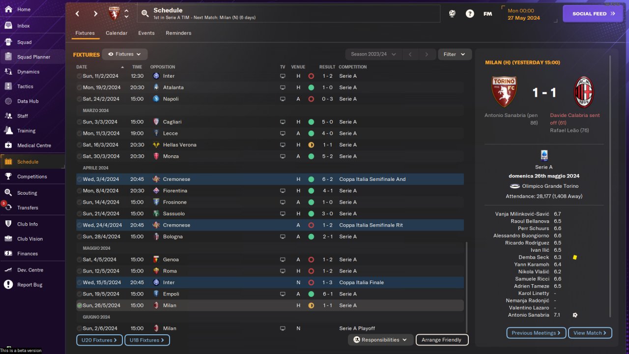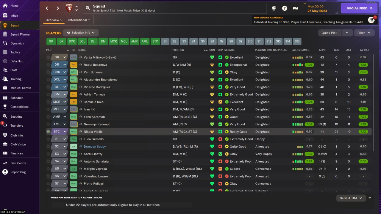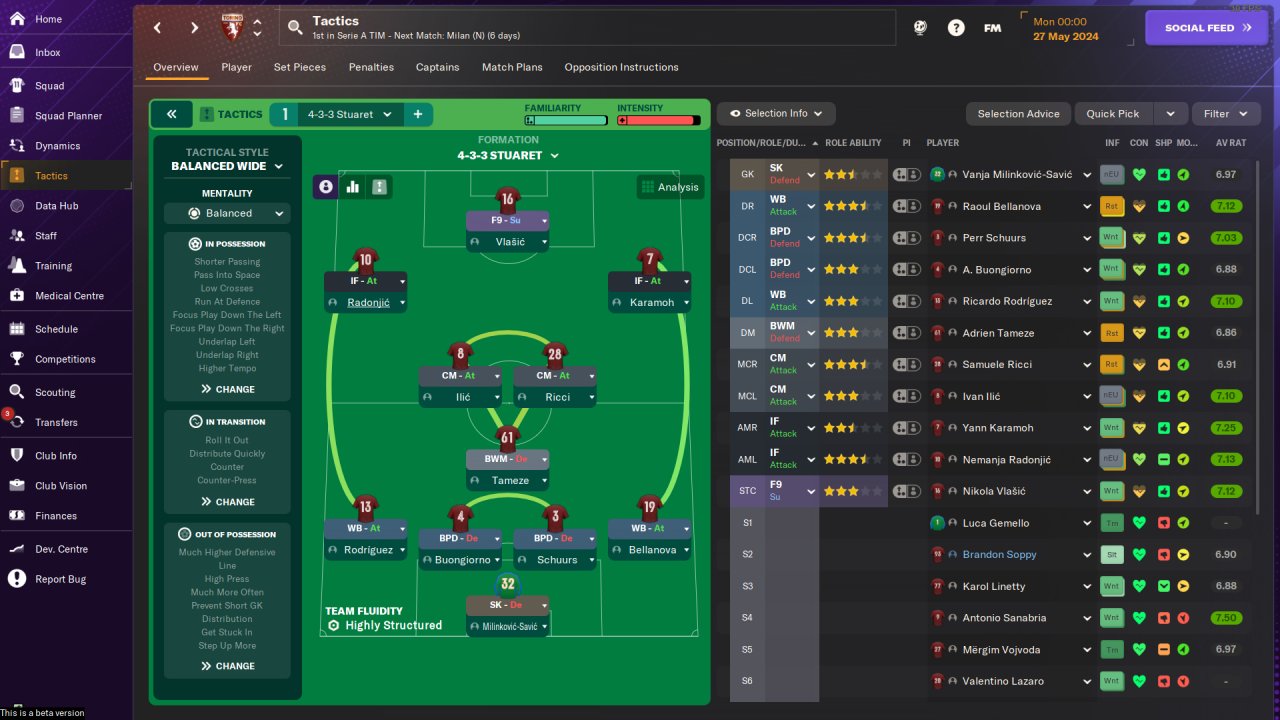Testing F9 in a 4-3-3 tactic, starting from "Over 100 - WB (A)".