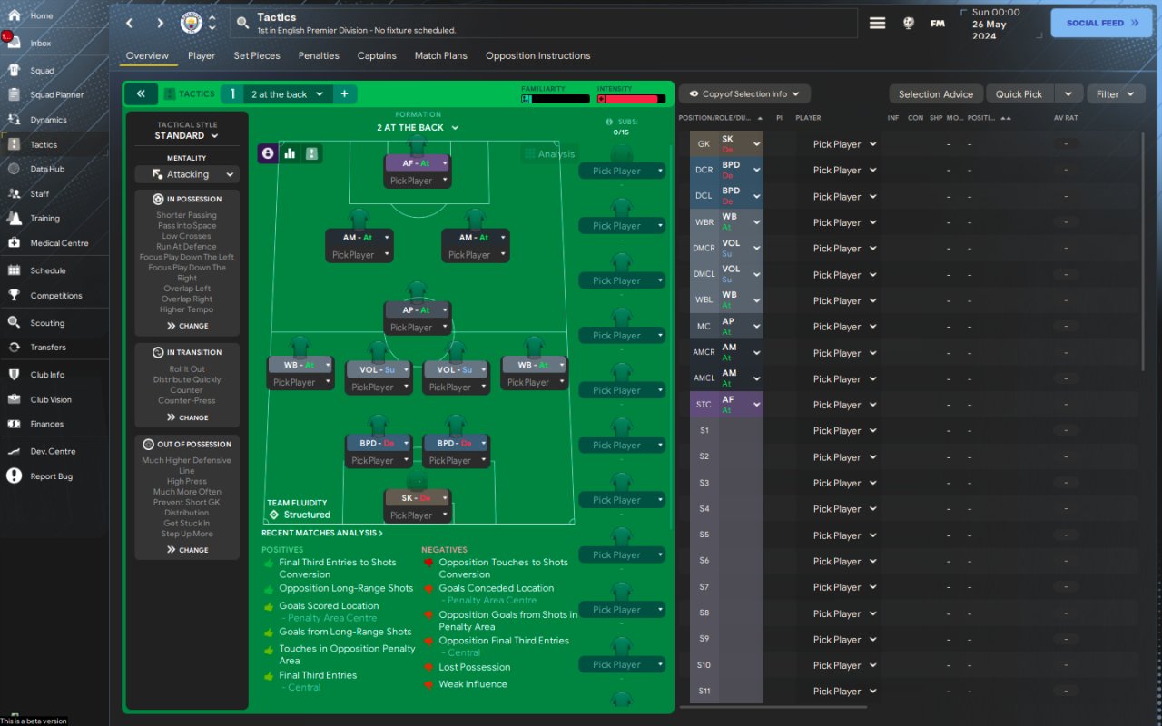 Mix of the few top tactics but with wing backs pushed up, not expecting much from testing.