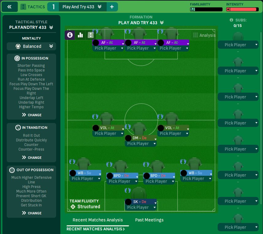 Here is a 433, 89 points is not great but it has potential. I don't like attacking mentality yet even if it can perform better so I sticked with balanced. You can tweak it in game going cautious in big games as you already know or attacking if you like it. If you want a 424 you can put the DM and the STC on the wings as inverted wingers(s) with stay wider and tackle harder.