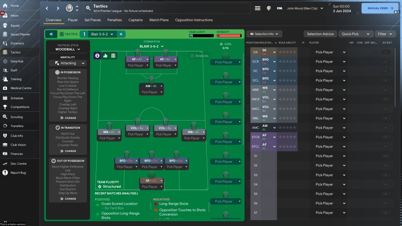 I dislike how all of the tactics on the table are so attacking, so in an attempt to mitigate that I'm doing a 5 atb. Tested with Man City and Luton.