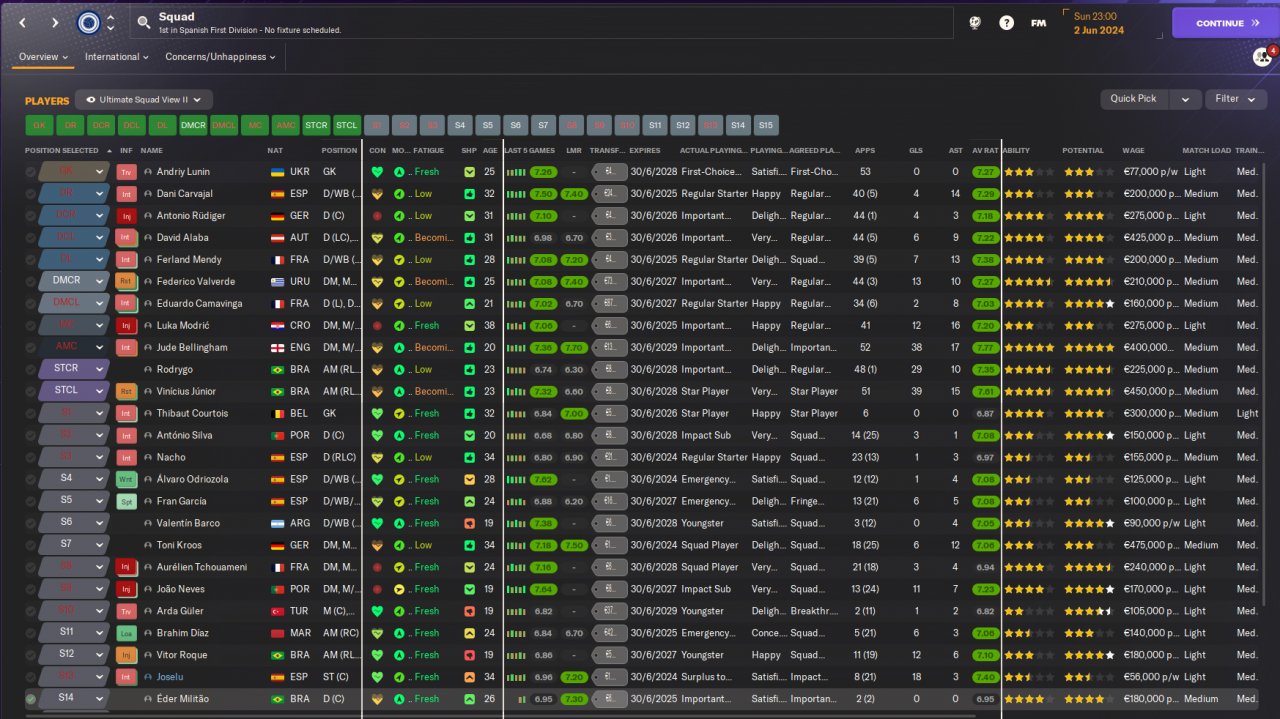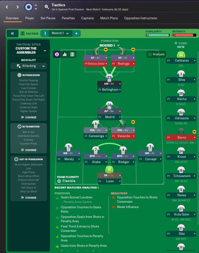 4312 with AP Narrow Based on the Brazilian box by Delicious https://fm-arena.com/thread/6593-4222-brazilian-box-iv/, modified for Modric/Kroos and Real Madrid. Played all the games myself up to Vallecano (A) and holiday the rest.