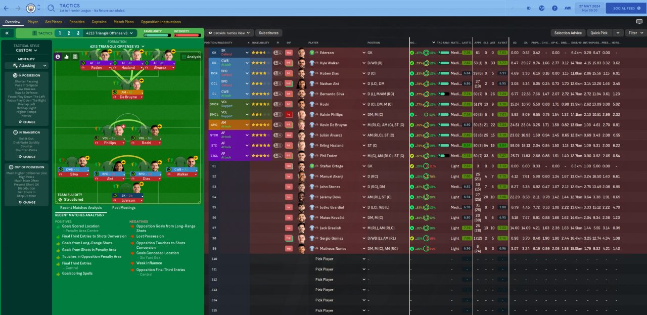 Borrowing the Focus on Flanks + Narrow attack idea from @dzek, seems to be very consistently effective for this formation. Obviously a small sample size but it is the best Man City test I've had so far (in terms of GD & expected stats)