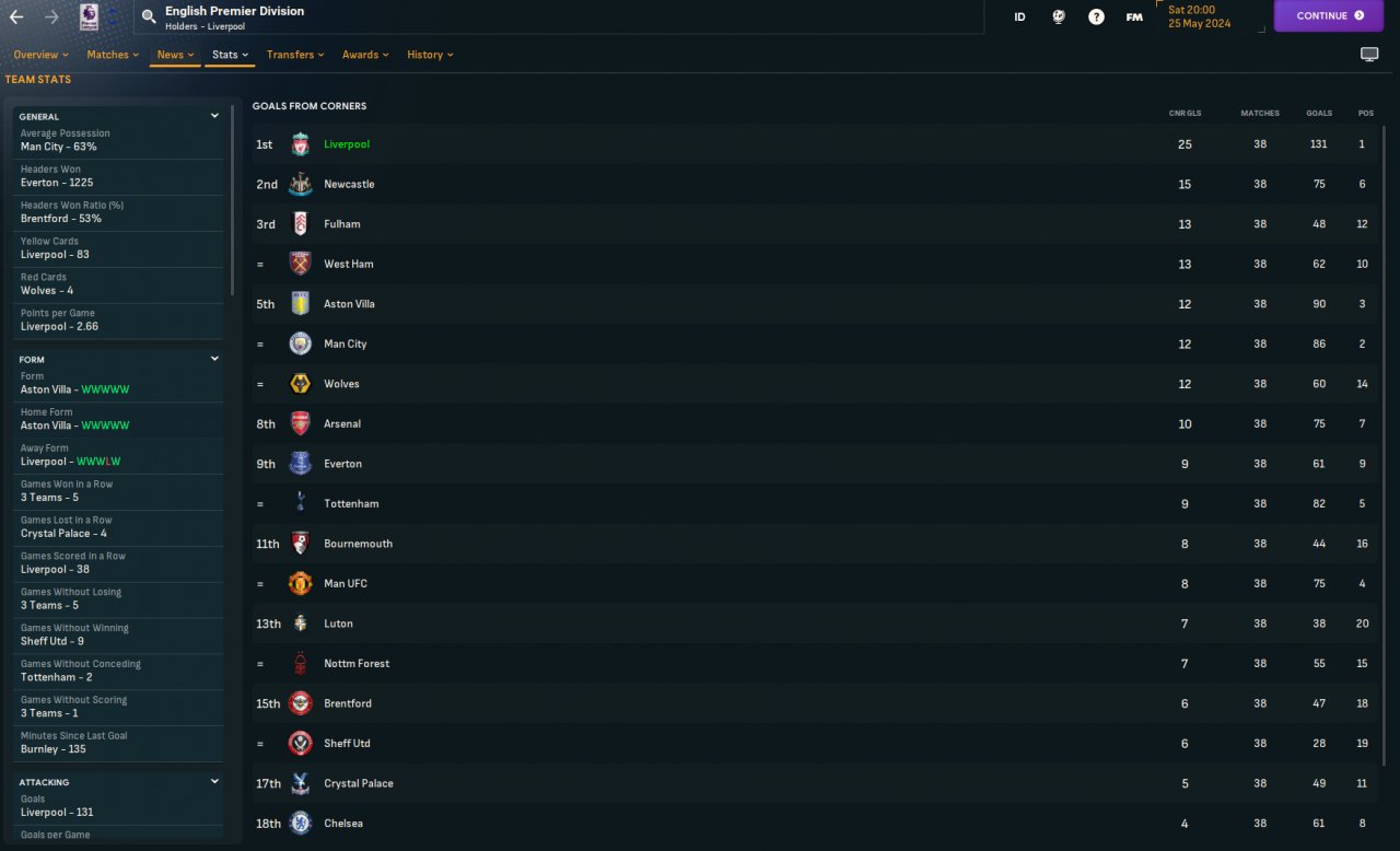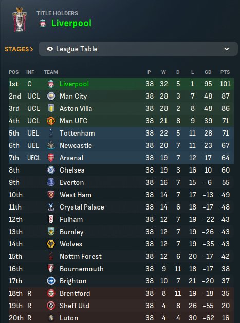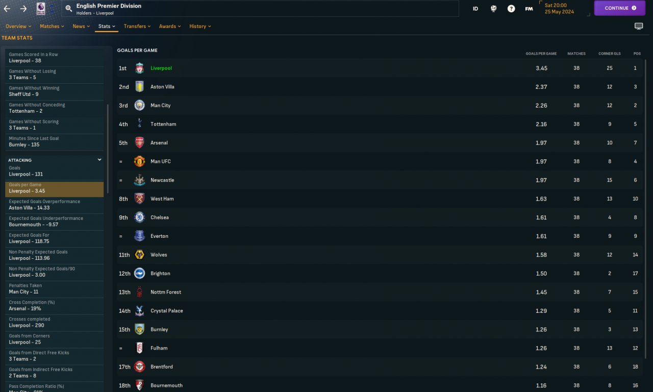 Scored 131 goals in the Premier League and got 36 goals against.