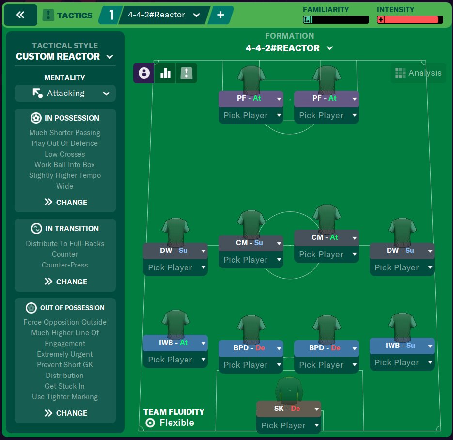 Attacking, attractive to watch, high-tempo football with goals galore coming from all areas; deep and byline crosses; intricate pass sequences; through balls; long shots; individual dribbles; set pieces.