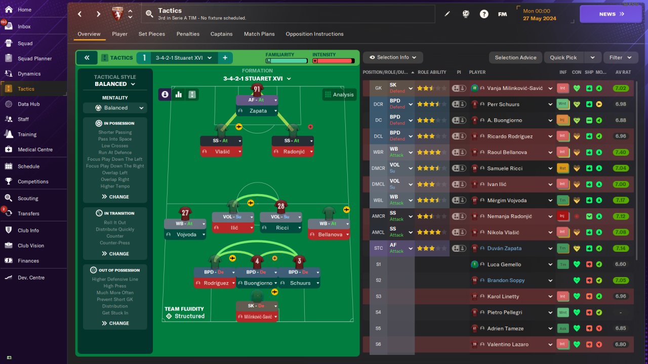 Testing 3-4-2-1 Stuaret XII in balanced mentality