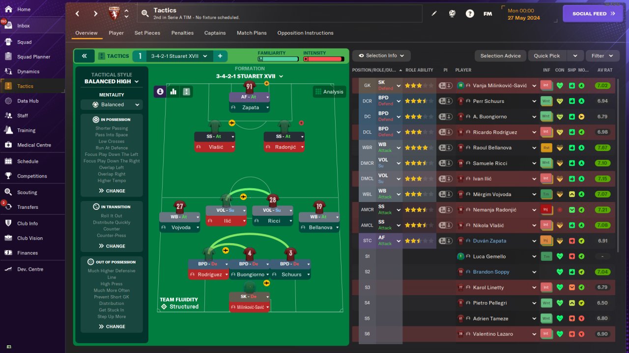 Testing 3-4-2-1 Stuaret XVI with "Much Higher Defensive Line" and "Step Up More"