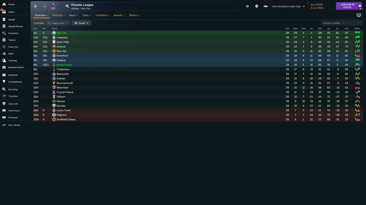 PL Table: