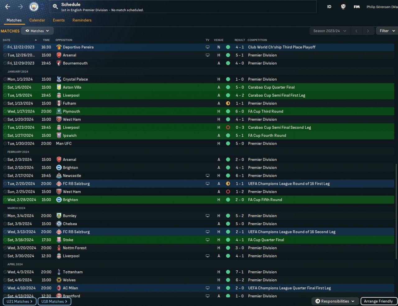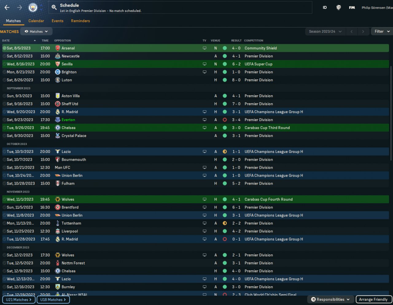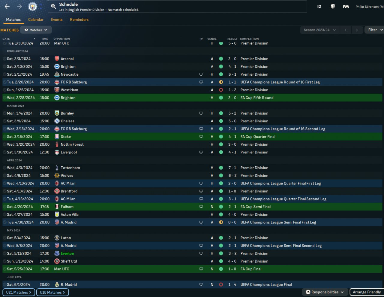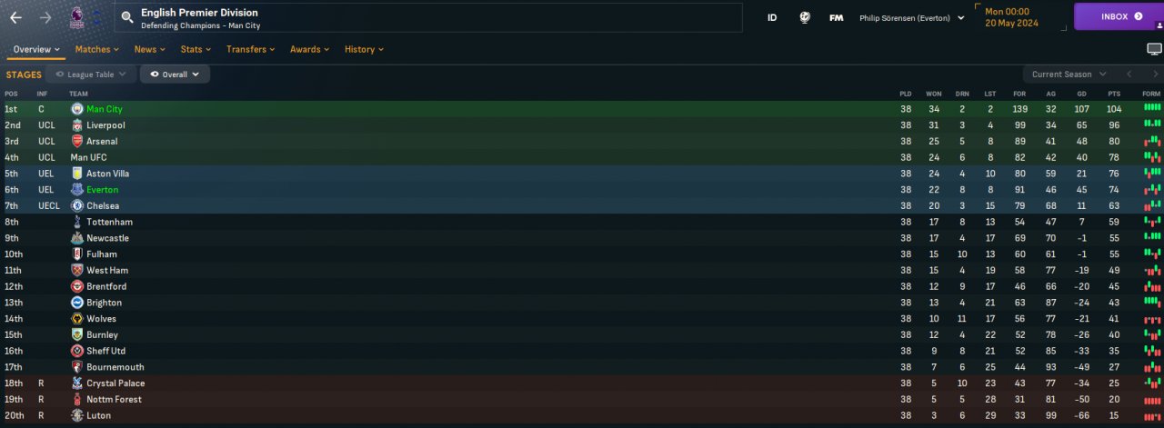 Simmed with City and only 6th with Everton but a decent goal difference nontheless. Feeling like balanced is better for plug n play (better for away games)