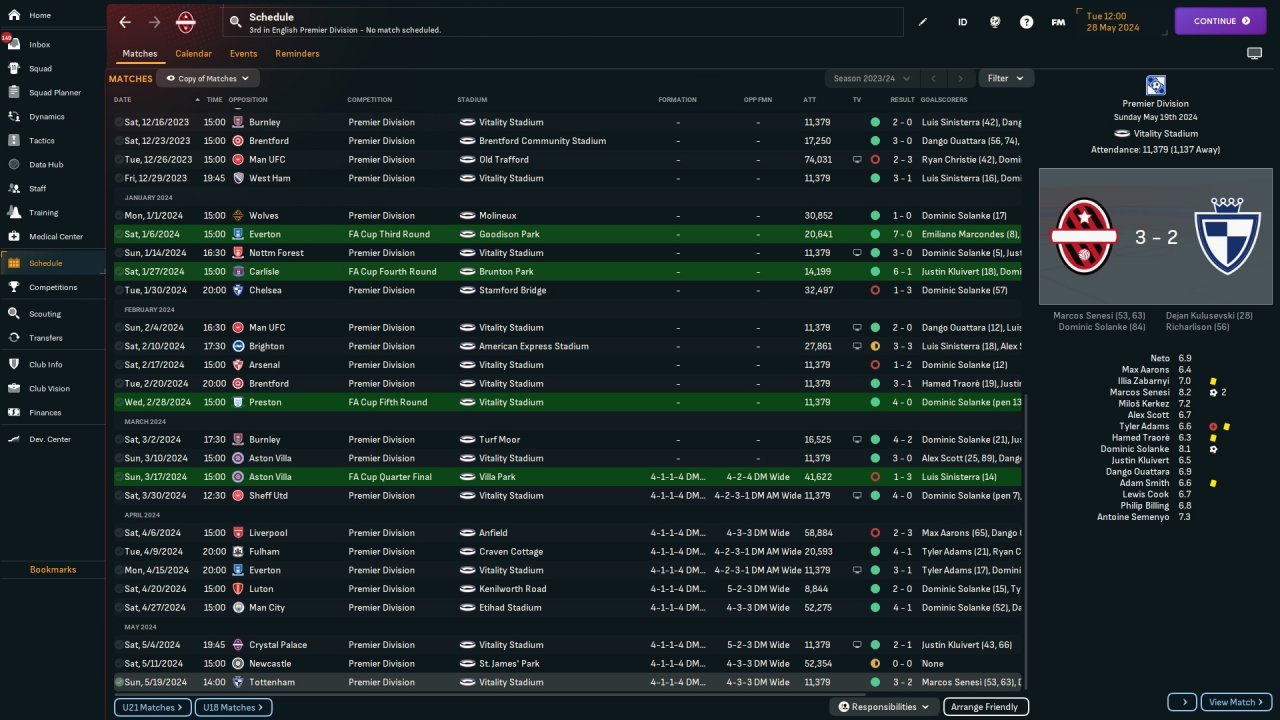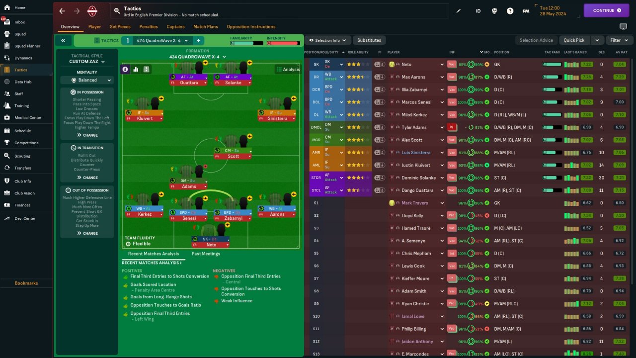 Just to give you a bit of background, I play only DOF (Director of Football) saves and I let my assistant manager dictate the tactics as I find using any Knap or FM-Arena tactics makes the game very easy (if you already know most of the mechanics in the game)
