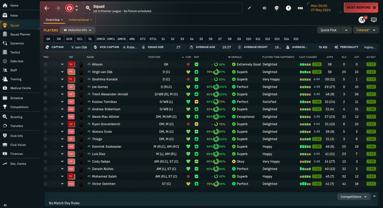 Overall, I am quite happy with the system now. That said, I still think the behaviours of the DMs can be optimised. They can be a bit too deep for counter-pressing and pressing purposes, and they can also step on each others' toes in build-up.