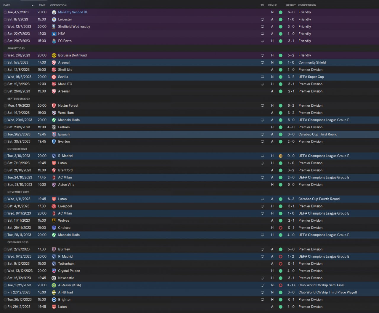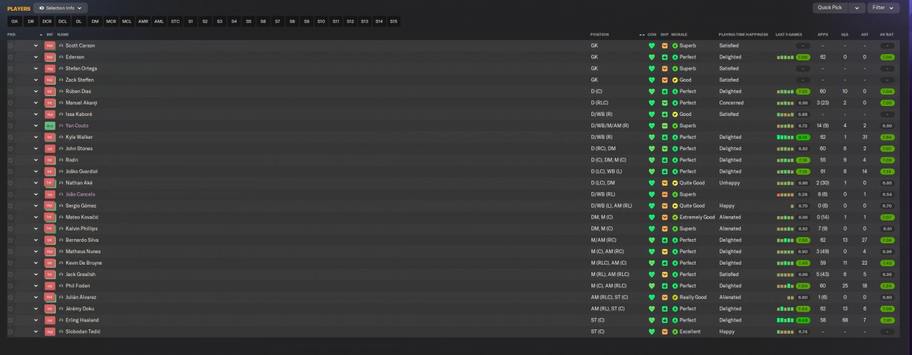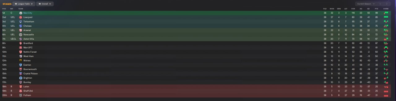 City (1st 23 goals conceded)