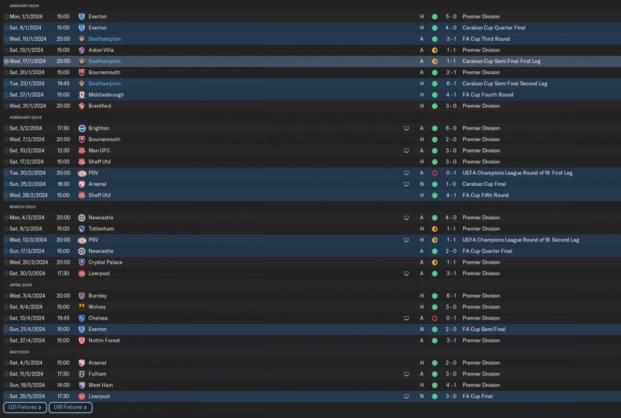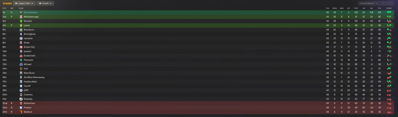 Southampton (1st unbeaten and 24 goals conceded)